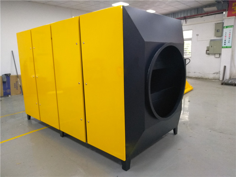 由于固體表面上存在著未平衡和未飽和的分子引力或化學(xué)鍵力,因此當(dāng)此固體表面與氣體接觸時(shí),就能吸引氣體分子,使其濃聚并保持在固體表面。利用固體表面的吸附能力,使廢氣與大表面的多孔性固體物質(zhì)相接觸,廢氣中的污染物被吸附在固體表面上,使其與氣體混合物分離,達(dá)到凈化目的。而活性炭吸附塔中使用的活性炭它是一種多孔碳,堆積密度低,比表面積大。常使用的活性炭比表面積在500~1700m2/g間。具有很強(qiáng)的吸附性能,是用途極廣的一種工業(yè)吸附劑。