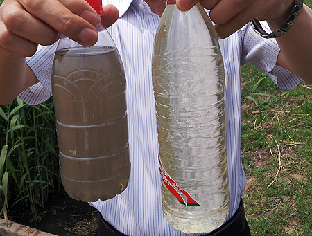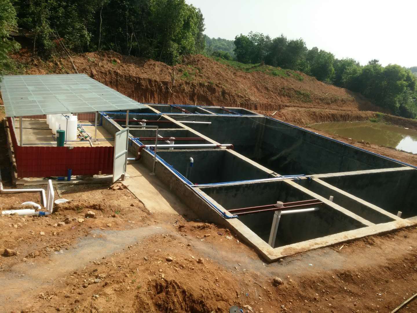 溪流氧化溝為磚混砌筑的水溝形式,上面蓋有帶孔洞的蓋板,使得空氣能夠進(jìn)入氧化溝內(nèi),氧化溝底布置有彈性填料,好氧微生物在上面附著生長,形成一定的生物膜,從折流式厭氧反應(yīng)器流出的污水在密布彈性填料的溝內(nèi)流淌過濾24h。在好氧微生物的作用下污水在氧化溝內(nèi)逐級分解過濾,水中的污染物逐漸減少,水體的透明度不斷提高,各項污染指標(biāo)都得到進(jìn)一步的降低,最終使得出水指標(biāo)達(dá)到二級排放標(biāo)準(zhǔn)。氧化溝每隔一段距離設(shè)置一個集污井,用于收集氧化溝內(nèi)的沉淀物,集污井上設(shè)置有窨井蓋,防止雜物進(jìn)入。一段時間后只需要清除一下集污井中的沉淀物,操作管理十分簡便。