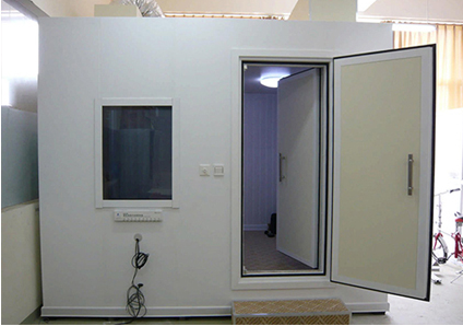 2、箱體的內(nèi)外殼采用2-3mm的冷扎鋼板,經(jīng)過(guò)沖壓、焊接、酸洗、噴涂制作而成的,內(nèi)部采用3-6層的阻尼、隔聲、吸音材料制做而成的復(fù)合隔聲墻板。3、根據(jù)客戶的使用要求,我們把墻體厚度設(shè)計(jì),為150mm-500mm,門設(shè)計(jì)為單道和雙道隔聲吸音門。