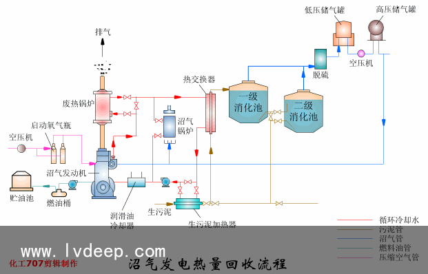 沼氣發(fā)電熱量回收流程?沼氣發(fā)電系統(tǒng)能積極、有效地利用沼氣,可以將沼氣中約30%的能量變?yōu)殡娏Γ?0%的能量變?yōu)闊崮?。在污?span style="color: green;">處置懲罰廠中可利用這一熱量給消化池進行加熱。