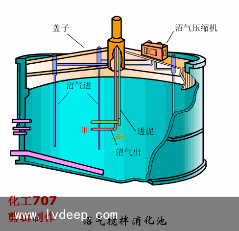 沼氣攪拌消化池?消化池通常指廢水處置懲罰中所產生污泥的厭氧生物處置懲罰。即污泥中的有機物在無氧條件下,被細菌降解為以甲烷為主的污泥氣和穩(wěn)定的污泥(稱消化污泥)。