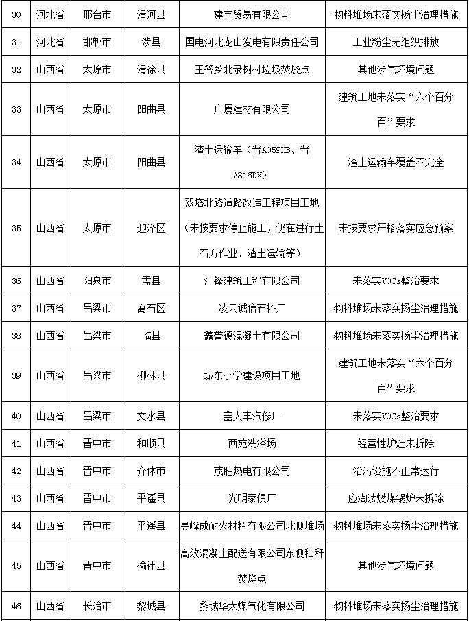 其中,天津市濱海新區(qū)1家;河北省唐山市遷西縣2家,秦皇島市海港區(qū)1家、青龍縣1家,保定涿州市2家,邢臺(tái)市清河縣1家;山西省長(zhǎng)治市黎城縣1家,呂梁市離石區(qū)1家、臨縣1家,晉中市平遙縣1家,運(yùn)城市稷山縣1家;河南省開封市尉氏縣1家,鶴壁市淇縣1家;陜西省咸陽市興平市1家、長(zhǎng)武縣1家,渭南市華州區(qū)1家。
