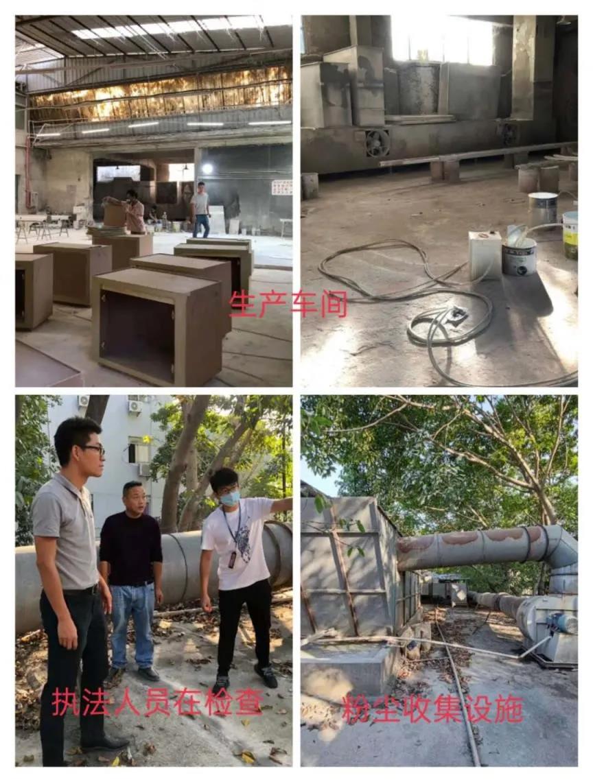 現(xiàn)場檢查時,該單位打磨工序正在生產,雖配套粉塵收集房,但現(xiàn)場沒有開啟粉塵收集,產生的粉塵無組織排放。